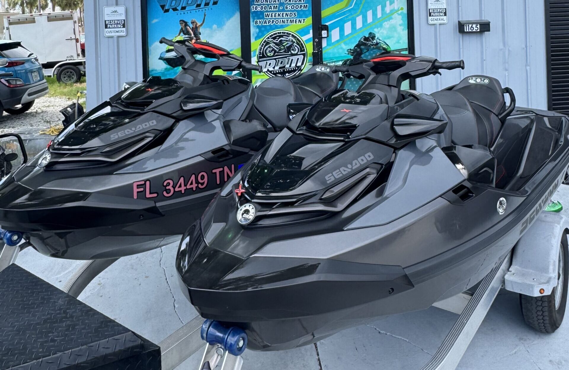 SEADOO RXT-X 300 SUPERCHARGED AUDIO PAIR ON DOUBLE TRITON TRAILER 2023 W/ 24HRS & 2022 W/ 9HRS BOTH WITH FULL WARRANTY THROUGH NEXT SEPT!