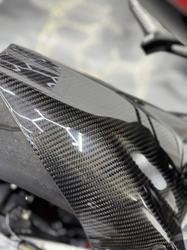 Arrow Exhaust, Puig Windshield, Carbon Fiber Rear Tire Hugger, Carbon Fiber Tail Section, R&G Frame Sliders, Fender Eliminator & Flush Mount Blinkers.