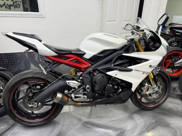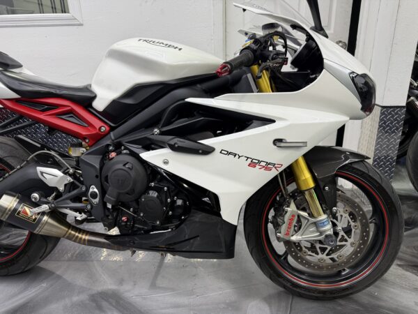 2017 Triumph Daytona 675R In Great Condition! Such a beautiful bike! These 675R comes loaded from the factory being the R Spec, Ohlins front and rear shocks, carbon fiber accents, Brembo brakes, quick shifter and much more. 22,000 Miles And runs perfect! Fully Serviced And Ready To ride anywhere. Also comes with Upgraded NRC Fender Eliminator Front And Rear Turn Signals, Zero Gravity Windshield, Full System Werkes Exhaust.