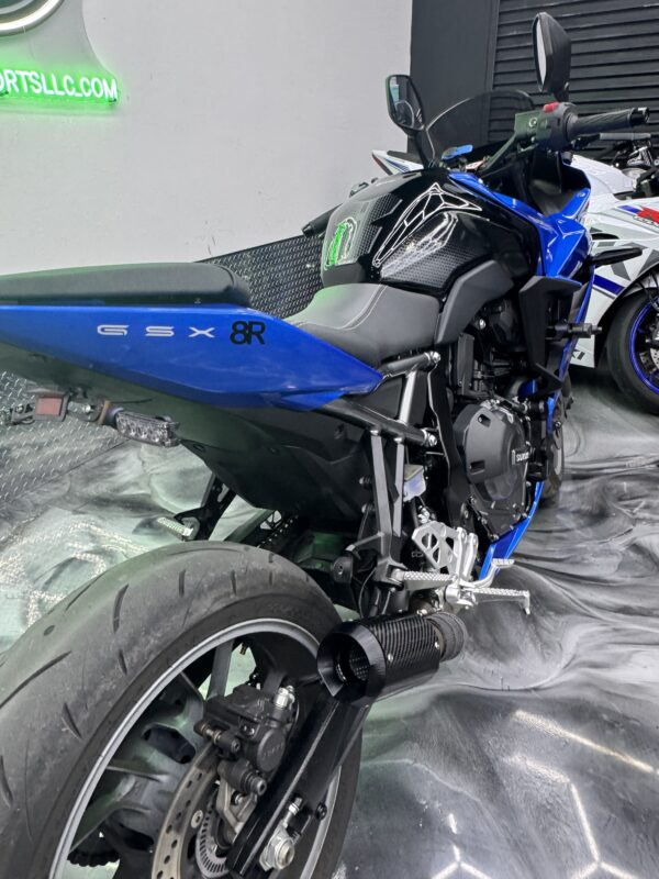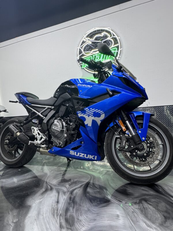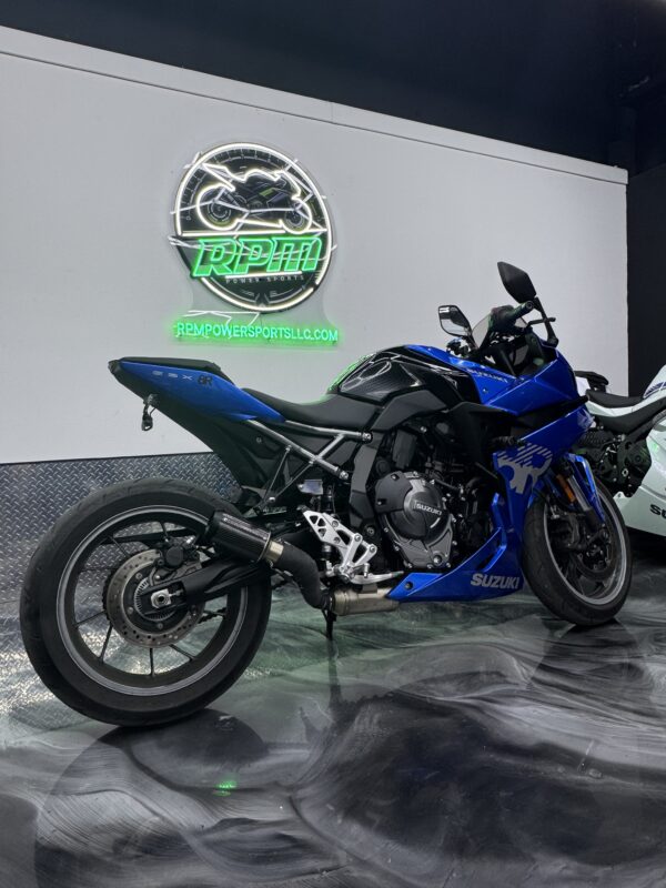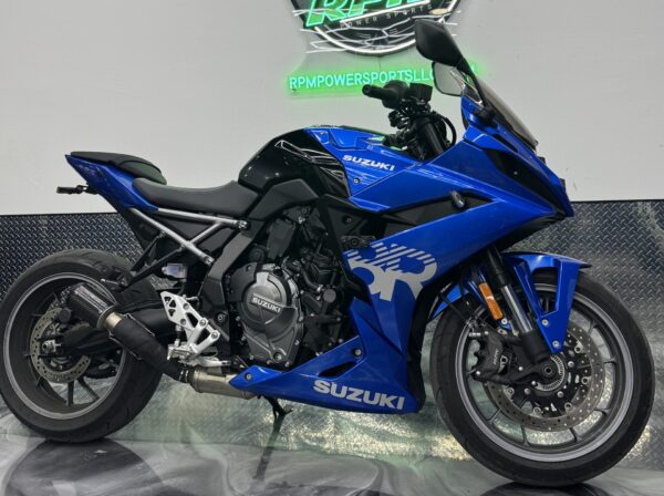 2024 Suzuki GSX-8R, with exhaust system and frame sliders. Was a single owner bike, and only has 3,140 miles! Certified for up to a 5-year extended warranty as well!